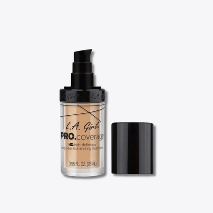 Prep your skin with your primer of choice, then add a small amount of L.A. Girl’s Pro Coverage HD Illuminating Foundation to the center of your face and blend outward using an L.A. Girl Foundation Brush, a sponge, or your fingers. Build up to reach your desired level of coverage (medium-to-full), blending until flawless.