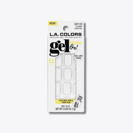 Designed with a curved edge for a seamless, natural fit, each set is inspired by L.A. Colors' most popular Gel-Like nail polish shades, making it easy to match your nails to your toes. The kit includes 12 nail tips and glue for effortless application.