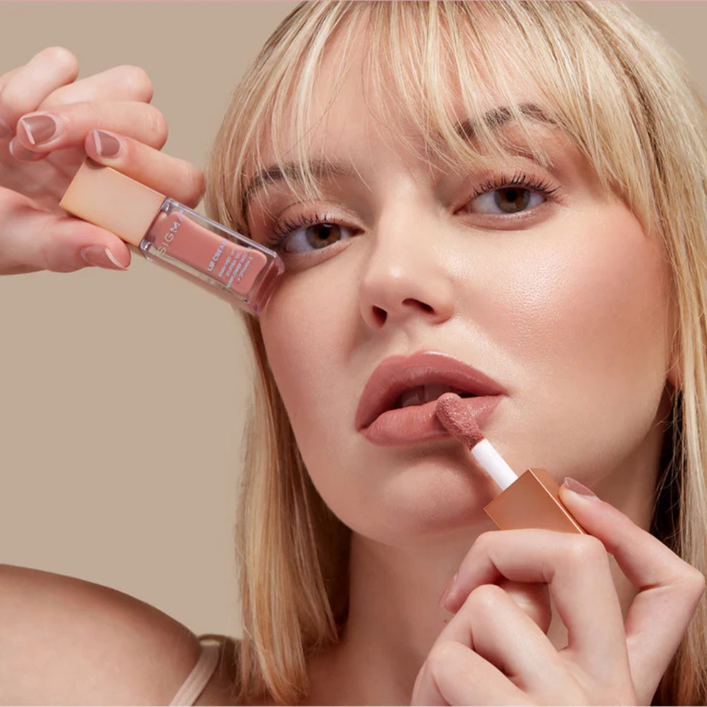 Lightweight yet highly pigmented, these creamy lip creams provide rich color while nourishing lips with jojoba oil, sunflower seed oil, and vitamin E. The non-sticky texture keeps lips soft and hydrated all day long. For easy, luxurious application, use the oversized applicator designed to fit the natural curve of your lips. Available in five stunning shades: Begonia, Dapper, Dusty Rose, New Mod, and Rosewood.