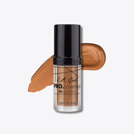Prep your skin with your primer of choice, then add a small amount of L.A. Girl’s Pro Coverage HD Illuminating Foundation to the center of your face and blend outward using an L.A. Girl Foundation Brush, a sponge, or your fingers. Build up to reach your desired level of coverage (medium-to-full), blending until flawless.