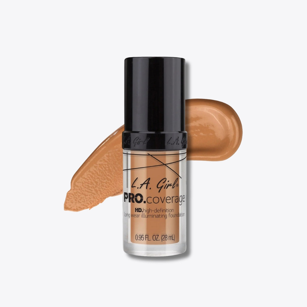 Prep your skin with your primer of choice, then add a small amount of L.A. Girl’s Pro Coverage HD Illuminating Foundation to the center of your face and blend outward using an L.A. Girl Foundation Brush, a sponge, or your fingers. Build up to reach your desired level of coverage (medium-to-full), blending until flawless.
